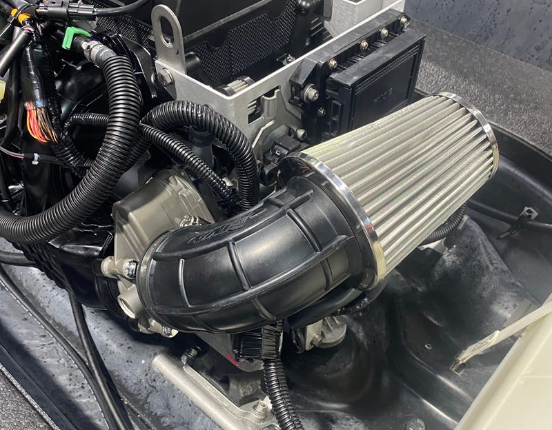 Our Power Filter Kit feeds your JetBlaster's TR-1 engine a steady diet of unrestricted air delivering improved acceleration and RPM. Replaces bulky stock air box with a high-volume, SAE certified stainless steel flame arrestor that attaches directly to the throttle body. This kit dramatically cleans up your engine compartment by removing the large original plastic air box and relocating electrical components onto a compact, precision-fabricated aluminum bracket. Includes detailed installation instructions.